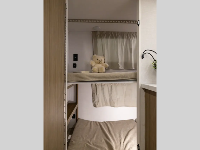 - Large Egress window rear wall on double over double bunk model