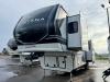 Sleeps 5 Slides 3 Length 37 ft 4 in Ext Height 13 ft 4 in Interior Color Arlington, Kingston Hitch Weight 2580 lbs Dry Weight 12217 lbs Cargo Capacity 4363 lbs Fresh Water Capacity 75 gals Grey Water Capacity 87 gals Black Water Capacity 48 gals Tire Size ST235/80R16G Furnace BTU 35000 btu Available Beds King Refrigerator Type GE Energy Star Residential with Ice Maker Refrigerator Size 18 cu ft Cooktop Burners 3 Shower Size 48" x 30" Number of Awnings 2 Axle Weight 7000 lbs LP Tank Capacity 30 lbs Water Heater Type On Demand AC BTU 15000 btu TV Info LR 50" LED Smart TV Awning Info 11' and 18' Electric with LED Lights Axle Count 2 Washer/Dryer Available Yes Number of LP Tanks 2 Shower Type Shower w/Seat Electrical Service 50 amp Similar Floorplans